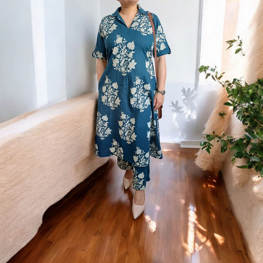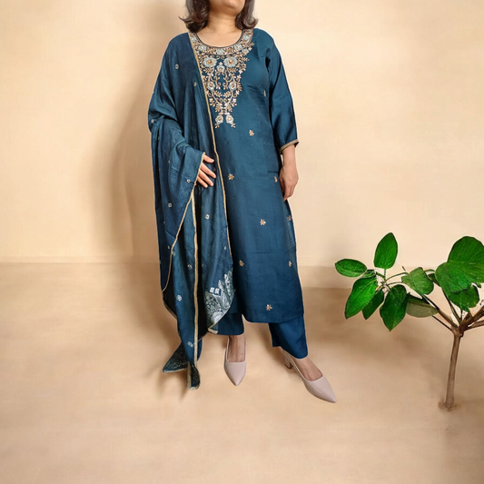 Midnight Bloom - 3 Piece Festive Kurti Suit