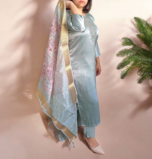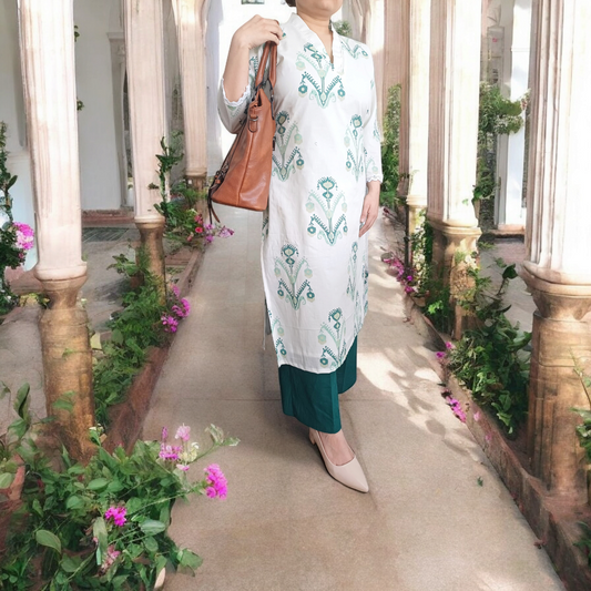 Ivory Bloom - 3 Piece Festive Kurti Suit