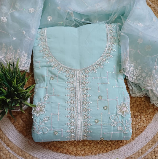 Pastel Royale - Festive Cotton Silk Dress Material with Embroidery (4 Colors)