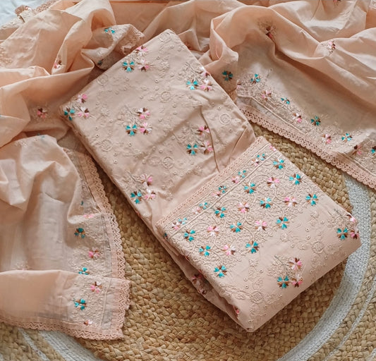 Floral Bliss - Festive Cotton Dress Material with Thread Embroidery (4 Colors)